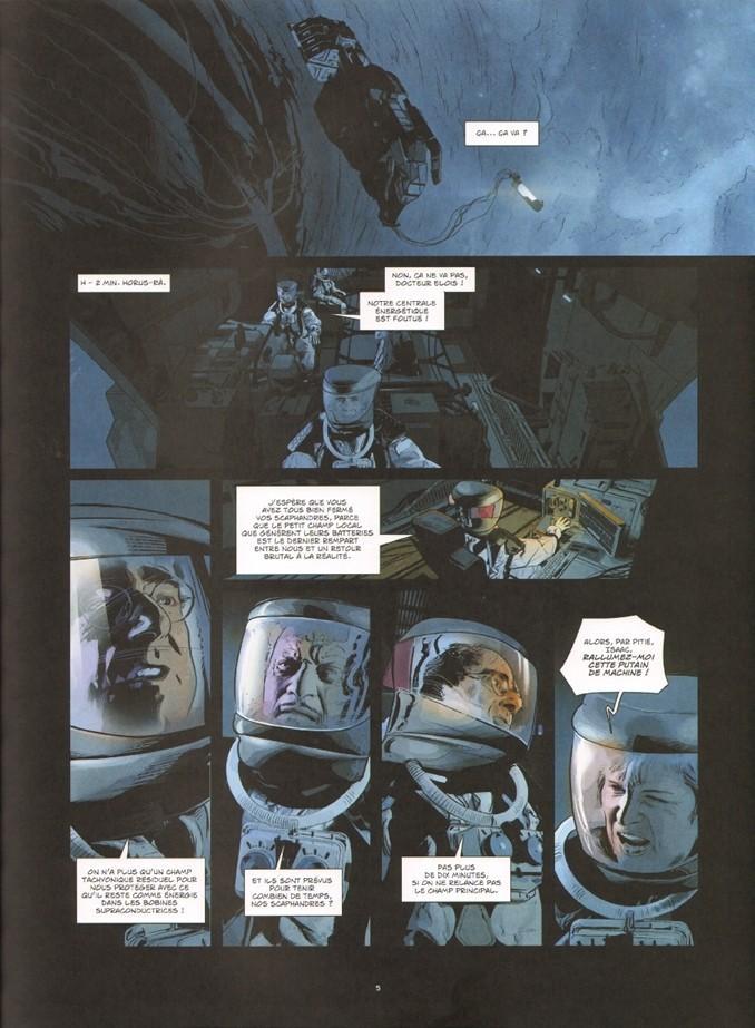 Ce petit voyage dans le royaume des morts est très crédible parce qu’il se fonde sur une expérience scientifique plausible. Le premier tome mettait en scène un équipage des plus paradoxaux : un pilote et un agent, fortes têtes et toujours prêt à bondir, une savante et un cardinal mais aussi Mme Fork, mère éplorée, qui met à disposition des sommes astronomiques pour réaliser l’exploit. Le récit est composé de multiples rebondissements comme savent les distiller Valérie Mangin et Denis Bajram dans leurs scénarios. Action et aventures sont aussi au rendez-vous de ce second volume. De plus, la fin de ce très bon album de science-fiction est formidable. L’auteur de Black Lord (avec Guillaume et Xavier Dorison, Glénat), Jean-Michel Ponzio fait le job d’une belle manière, grâce à des planches très (trop?) réalistes.