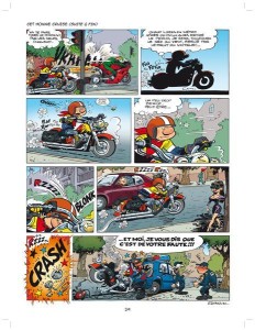 Réunir trois grands auteurs de la bande dessinée franco-belge pouvait laisser penser que ce serait formidable. Maltaite, Colman et Batem (les deux premiers au scénarios et les trois pour le dessin) atteignent partiellement leur but : nous faire sourire à leurs gags en une planche. Que l’on soit amateur ou non de grosse cylindrées, cela ne fonctionne pas tout le temps. Si l’idée d’intégrer leurs personnages principaux dans une rédaction de magazine motos était originale, souvent ils s’en éloignent et cela est dommage. Pourtant les personnages sont très bien cernés et divers : Sam, journaliste un peu désorganisé et bon pilote ; Spot, photographe et compagnon de route de Sam ; Gunther, homme de fer paraplégique et directeur du journal ou encore Emma, assistante de Gunther, cruelle et servile. Reste la partie graphique : un dessin à 6 mains, agréable et d’une belle force comique.