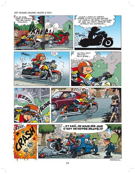 Dans le sillage ronronnant des moteurs de Joe Bar Team (Bar2 et Fane, Vents d’Ouest), les éditions Hugo BD ont laissé carte blanche à un trio d’auteurs reconnus pour conter les aventures moto de Sam Speed. Eric Maltaite, Batem et Stephan Colman livrent des gags en une planche où s’amusent Sam et Spot, journalistes à Rotomoto.