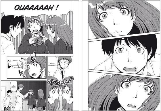 Résumé de l’éditeur : Ajio est raide love de Chiaki, une pétillante camarade de classe. Le problème, c’est qu’il est plus habitué à recevoir des vents que des sourires ! Eh oui, le cœur de Chiaki bat pour un autre garçon. Fruit du hasard (ou pas), les lycéens sont tous deux consignés dans le bureau de l’énigmatique professeur Yamada. Ce dernier leur propose un marché inattendu… Il annule les heures de colle si les jeunes se prêtent à une expérience amoureuse hallucinante : Ajio doit conquérir le cœur de Koaki, l’exacte réplique de la belle que le prof vient de créer sous leurs yeux ! Au bout de quelques mois, les doubles fusionneront et celle qui aura le plus de sentiments pour son copain l’emportera.