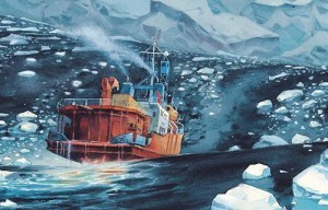 Dès les premières pages, le lecteur est mis sous tension comme les deux auteurs : on ne sait pas si leur voyage aura lieu. L’attente est longue, ils se posent des questions. Puis le jour J arrive, ils embarquent depuis Hobart, en Tasmanie, sur L’Astrolabe. Ce navire, qui tangue beaucoup mais qui a fait de nombreux allers-retours entre l’Océanie et la station, est pourtant le bateau le plus sûr pour ce style de traversée. Le trajet est mis en scène dans les moindres détails : la longueur du trajet, le mal de mer, les bannettes et la difficulté de traversée du pack (un mer de glace qui peut emprisonner les navires). Puis l’arrivée tardive à DDU et enfin le raid, ce moment que les Lepage attendent le plus avec la plus grande impatience. Ce convoi de plusieurs tracteurs et containers doit cheminer sur 1200 km et à une faible allure, entre DDU et la base franco-italienne Concordia. Un trajet de 8 jours dans un désert blanc où il n’y a aucune âme qui vive et dans un silence assourdissant.