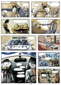 Inspiré d’un fait divers des années 20, l’Affaire de Tulle, dont Henri-Georges Clouzot fera un film Le corbeau, ce petit polar animalier ne paye pas de mine. Pourtant, cette histoire d’Emmanuel Trédez est assez bien maîtrisée, mettant en scène des animaux anthropomorphes dont le héros Londubec, cigogne plutôt fin limier et se transformant en un être hyper-puissant lorsqu’il ingurgite de la choucroute, mais aussi son acolyte Tedteuf, canard, aux jeux de mots douteux et autres vieilles expressions inusitées, qui est de très bons conseils. Toute cette joyeuse galerie d’êtres vivants est plutôt dans la veine de Canardo (Sokal, Casterman) que de Blacksad (Guarnido & Diaz Canales, Dargaud). En effet, l’humour est l’ingrédient principal de cette série ; ce qui permet au lecteur de passer un agréable moment. En ce qui concerne la partie graphique, c’est assez réussi aussi. Le trait vif et jeté de Stéphane Nicolet est composé de fines hachures. Malgré parfois quelques petites erreurs dans la mise en scène et la composition des cases, le tout est agréable à l’œil. A gommer pour les prochaines enquêtes de la cigogne.