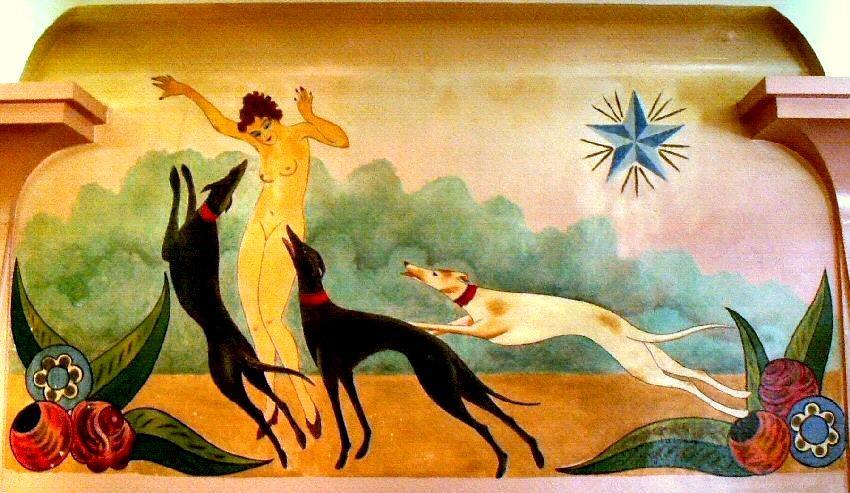 Cet ensemble mural se situait dans l’entrée d’une célèbre maison close de Tours, l’Étoile Bleue (à laquelle s’est intéressé notamment Alphonse Boudard, le chantre de ce genre de lieux de plaisirs, fermés par la loi Marthe Richard en 1946) : longtemps après, l’endroit, réhabilité, est devenu le siège de la Jeune chambre économique de Touraine (JCE) mais la belle Vénus aux chiens – devenue monument classé – accueille toujours les visiteurs.