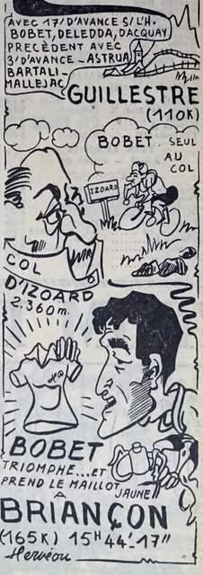Citons donc, en guise d’hommage de Case Départ, même si leurs noms sont un peu tombés dans l’oubli*, quelques-uns de ceux qui vont faire vivre et animer les colonnes parfois fort grises de ce journal : Jean Lanneau, Gaston Chamblet, Théo Charpentier, Jean-Yves Hervéou, Gilbert Riche, ou Jean Etève, dont les lecteurs retrouveront la signature soit au bas des séries verticales régionalistes, soit au bas des comptes-rendus dessinés du Tour de France, ces deux catégories que l’on peut ranger – aujourd’hui – sous l’étiquette « bande dessinée ».