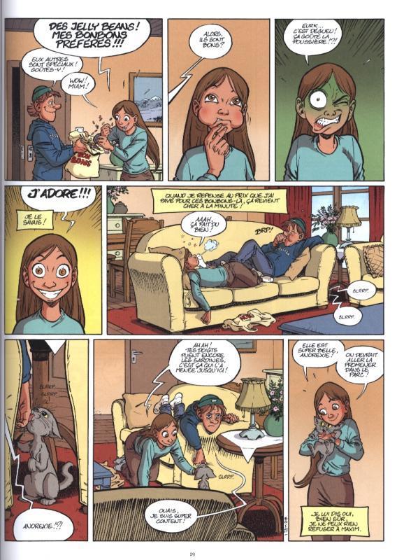 Ancien enseignant, Daniel Brouillette est un auteur canadien de romans à succès. L’incroyable histoire de Benoit-Olivier est d’ailleurs le tout premier récit de ses 233 ouvrages. Après La vie compliquée de Léa Olivier (de Catherine Girard-Audet & Ludowick Borecki, Kennes), Didier Alcante a décidé d’adapter une nouvelle histoire d’un québécois en bande dessinée. Un peu comme si le héros était l’alter ego de la jeune héroïne. Le scénariste appuie son histoire très drôle sur la personnalité folle du héros Benoit-Olivier. Il faut dire que Bine (son surnom) a tout pour lui : gaffeur, mauvais élève sauf en sport et éternel redoublant. Pourtant cet adolescent presque comme les autres est extrêmement attachant, notamment lorsqu’il souhaite que sa mère ne le prenne plus pour un bébé ou lorsqu’il supplie ses parents de lui offrir un chien (car c’est super cool) et qu’il reçoit en retour un chat, qu’il prénomme Anorexie.