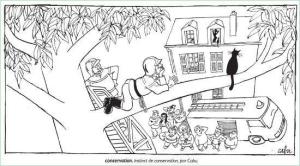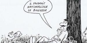 Cabu : C’est aussi ce que dit Plantu. On me demande toujours : « Pourquoi dans la vie, vous avez l’air normal, alors que dans vos dessins, vous êtes méchants ? ». C’est justement parce qu’on se défoule ! Avec un dessin, tu peux faire des dessins à la Peynet, moi j’ai commencé comme ça. Si tu voyais mes premiers dessins, c’était des dessins tendres…