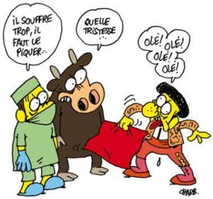 Charb : […] Mais l’autre problème avec les journalistes et la communication en général, je m’en suis rendu compte avec l’affaire des caricatures de Mahommet et toute l’actualité autour de ça, c’est que les gens sortent de l’école en sachant lire et écrire, et même, pour la plupart d’entre eux, analyser un texte. En revanche, l’école ne leur apprend pas à lire et à décrypter un dessin.