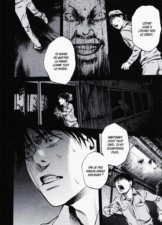 Nokuto Koike possède un trait d’une grande force graphique. Son dessin, un peu charbonneux fait de tramages et de frottements, est parfait pour restituer l’ambiance de tension et de suspens. A la fois lumineux pour les visages et très sombre pour les revenants.