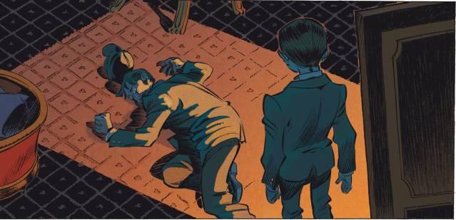 Pour ce troisième et dernier opus de La colère de Fantômas, Olivier Bocquet fait fort ! L’énorme course-poursuite entre le célèbre voleur et Juve est à la hauteur des attentes du public, rythmée et menée tambour-battant. D’ailleurs la fin est explosive et détonante. Il faut dire que le commissaire et ses hommes semblent complètement perdus dans leur enquête, leur tentative pour l’attraper et la tension est à son comble. Le récit est un habile mélange entre le polar très noir, parfois violent et très drôle ; et c’est jubilatoire ! Fantômas est à ce point un vrai méchant comme il l’est dans les romans d’Allain et Souvestre, à mille lieues de celui des films d’André Hunebelle avec Jean Marais et Louis de Funès : il est violent, il tue facilement et l’hémoglobine gicle au fur et à mesure des pages de l’album.