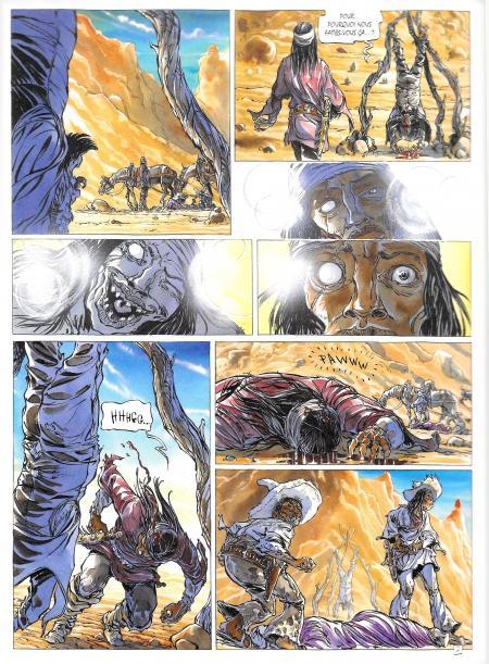 A partir de ce moment, cette aventure très sombre devient un huis-clos oppressant et le lecteur découvre alors le passé des deux protagonistes. La tension augmente avec l’apparition des indiens-éleveurs de buffalos.