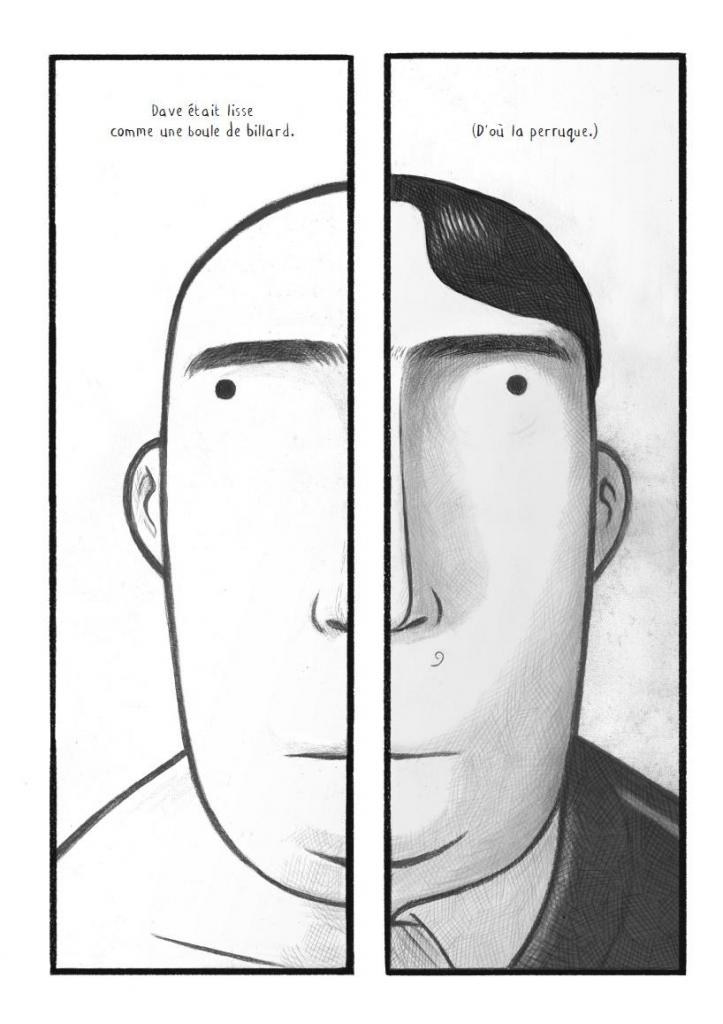 Résumé de l’éditeur : Sur l’île d’ICI, l’ordre est le maître mot : des visages aux haies soigneusement taillées, jamais rien ne dépasse. Jusqu’au jour où Dave, modeste employé de bureau, grand amateur des Bangles et passionné de dessin, se retrouve malgré lui affublé d’une incontrôlable barbe qui ne cesse de grandir, grandir jusqu’à passer la porte de son appartement, entraver la circulation, causer mille et un incidents… et précipiter l’île et ses impeccables habitants dans une fuite en avant, tout droit vers le désordre.