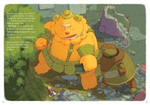 Pour accompagner son scénario, Joris Chamblain a fait appel à Lucile Thibaudier, auteur de Sorcières Sorcières (Kennes éditions, 2014). Son trait tout en rondeur est d’une grande douceur et ses couleurs apportent beaucoup de chaleur au récit. Ses planches composées de grandes cases sans cadre (jusqu’à 5 vignettes maximum) permettent d’observer tout son talent. A noter des décors sont aboutis et que les engins volants (l’hélicoloptère) sont dignes de ceux de Jules Verne. Après quelques légers réglages, Lucile Thibaudier deviendra une grande dessinatrice.