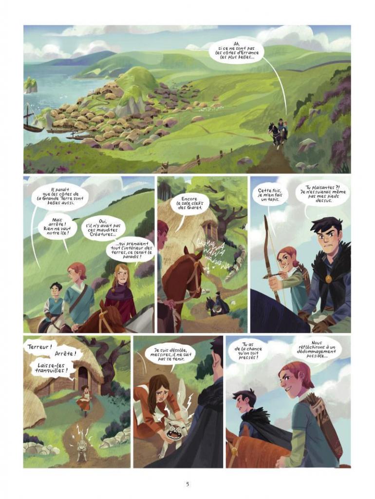 Après l’excellent série Les carnets de Cerise (avec Aurélie Neyret, trois tomes chez Soleil), Joris Chamblain imagine un nouvel univers merveilleux et fantastique pour les enfants Enola et les animaux extraordinaires. Pour ce premier volet, le jeune lecteur entre rapidement dans le vif du sujet. A peine le temps de découvrir la jeune fille et Maneki, son chat mais aussi Archibald, vieil inventeur, qu’elle est appelée à l’aide par le curé et le sculpteur d’un village. Teinté d’un bel humour, le récit est rythmé et le jeune lectorat (dès 8 ans) passera un agréable moment de lecture-plaisir. Nous décelons tout le potentiel de ce monde imaginaire et de son héroïne ; la série devrait plaire et avancer dans des directions originales. Les animaux (Maneki, le phénix) ou les gargouilles sont personnifiés ce que vont forcément apprécier les enfants.