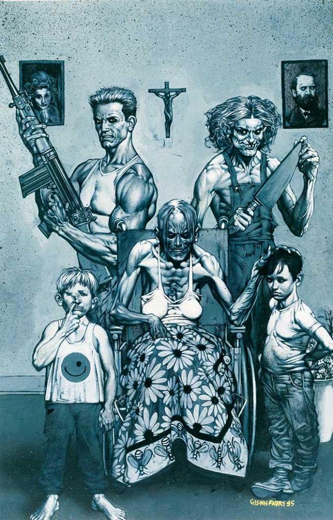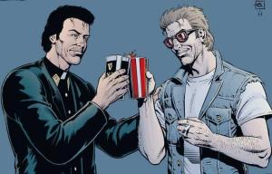 Si Preacher est le chef-d’œuvre d’Ennis, c’est le cas aussi pour Steve Dillon pour le dessin. L’auteur de Hellbalzer, avec le même scénariste (1992) propose des planches d’une grande force graphique. Influencé par les albums de Moebius (notamment visible pour les visages), les gueules cassés sont formidables.