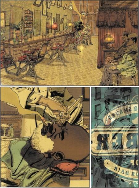 Ce récit noir est porté par une partie graphique de premier plan proposée par Jef. Le trait de l’auteur de Flash ou le grand voyage (avec Thomas Kotlarek, Des ronds dans l’o) lui permet de composer des planches extrêmement abouties et d’une excellente qualité. Les couleurs qu’il y apporte sont, elles aussi, d’une grande élégance par des teintes de jaune, ocre, marron, rouge ou vert.