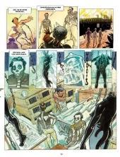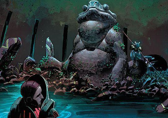 Avec le formidable scénario, il y a aussi la partie graphique, elle aussi, magnifique. Le trait anguleux de Matteo Scalera est fantastique. Dans la veine des récits de science-fiction des années 60-70, son côté kitsch d’une grande maîtrise graphique ravira les amateurs du genre. Les costumes-combinaisons de Grant et ses amis mais aussi les batraciens font penser aux films fantastiques de ces années-là. Le design des décors ou des personnages est soigné et d’une grande élégance. Ajouter à cela les couleurs de Dean White et l’on obtient des planches magnifiques.
