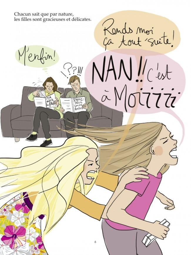 Les albums de ce genre fleurissent depuis deux-trois ans, mais tous ne sont pas réussis. Si Margaux Motin et Pacco ont livré des opus drôles et aboutis (Very Bad Twinz ou Une semaine sur deux), celui de Margot de Vigan nous a beaucoup moins enchanté. Si les situations de départ sont justes et bien observées, toutes ne nous font pas fait rire voire sourire. Pourtant son regard sur ses personnages est bienveillant, sensible et ironique mais ses illustrations ou ses planches ne font pas toute mouche.