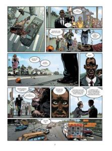 Si comme je l’ai dit la couverture n’est pas des plus réussies (le visuel de la seconde est, elle plus agréable), les planches de Sergio Bleda sont formidables. L’auteur espagnol, habitué des comics (Dolls Killer chez Soleil ou Vampire Dance chez Dark Horse), livre ici des pages semi-réalistes d’une excellente qualité. Son découpage dynamique met en avant les personnages et les scènes d’action.