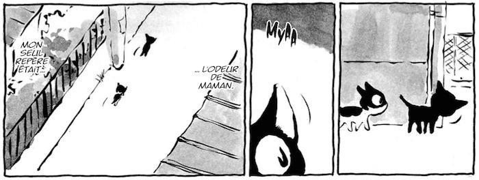 Publiée à partir de 2001 par Kôdansha, la série comprend déjà 9 volumes au Japon. C’est donc Kana qui a décroché la licence de cette belle saga animalière. A la fois tendre et douce, l’histoire de Sugisaku est composée de petites scénettes courant sur deux pages à chaque fois. La grande originalité de Kuro, c’est que le narrateur est le chaton lui-même, ce qui incarne fortement la série et convient parfaitement aux enfants. Ce manga familial est pourtant assez réaliste, puisque rien n’est oublié, même les moments les plus délicats de la vie du félin (jamais montrés mais plutôt suggérés) : la naissance, le rejet, la fuite des deux chatons, mais aussi la tristesse par la perte d’un frère, ou l’adoption.