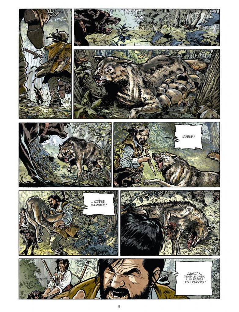 Un loup est un loup est un roman historique de Michel Folco publié en 2007 aux éditions du Seuil. Très documentée, cette œuvre de fiction est construite comme un conte fascinant, mêlant l’Histoire, les croyances païennes et chrétiennes et l’action. Pour être fidèle au roman, Pierre Makyo a fait d’ailleurs appel à l’écrivain pour adapter son écrit. Grâce à son sens du découpage, l’auteur de Balade au bout du monde (Jean-François Charles, Ersel chez Glénat) arrive à résumer ce pavé de plus de 600 pages en deux tomes.