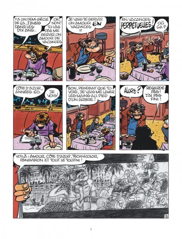Publié par Dargaud, le formidable récit de Daniel Pennac plonge le lecteur dans la région niçoise des années 50. Ami de Florence Cestac, il lui raconte cette fabuleuse histoire d’amour atypique de Germaine et Jean Bozignac et réussit le tour de force de nous y intéresser. Il faut dire que ses deux personnages sont de plus fantasques, à la lisière de la société de l’époque, véritables baba-cool dans l’esprit avant l’heure, ils ne travaillaient pas et passaient leurs journées dans une petite maison près de Saint-Paul de Vence, remplie d’ouvrages en édition originale. Lettrés, ils étaient aussi de vrais épicuriens.