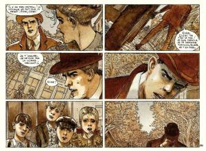En ce qui concerne la partie graphique, l’auteur d’une adaptation D’un sac de billes (avec Alain Bouton, 1992), propose une version à l’italienne de son album afin de rendre ses planches plus cinématographique. Certaines courent sur une double-page avec de grandes cases pour obtenir un effet cinémascope. Sa méthode en couleur sépia directe a été faite grâce à la technique dite de « l’huile à l’eau » et cela donne un effet rétro très réussi.