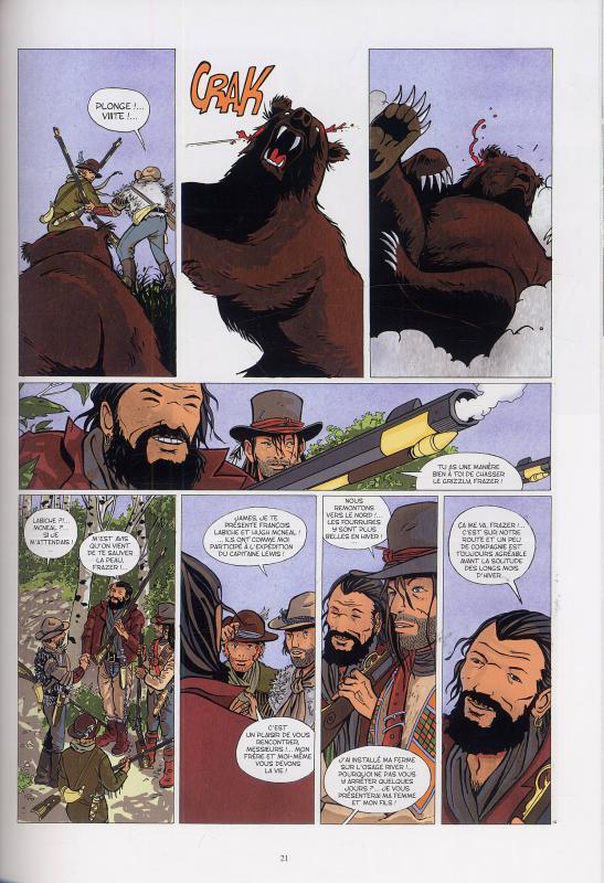 Le récit dense (parfois un peu classique néanmoins) de Roger Seiter est très agréable à lire. Equilibré et très efficace, il capte facilement le lecteur, grâce à un contexte historique très bien restitué : le grand ouest américain au début du 19e siècle. Notamment, un moment particulier pour la jeune nation : le basculement d’un équilibre fragile entre les peuples indiens et les colons nouvellement installés, et ce jusqu’à un affrontement quotidien voire sanglant, comme l’explique clairement la préface de huit pages signées Nicolas Kempf (les différents peuples, les trappeurs, les fleuves et la Grande guerre des indiens).