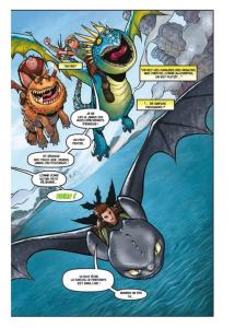 Dans cet album, le jeune lectorat retrouve les personnages principaux du film d’animation Dragons : Harold et son dragon Krokamou mais aussi Astrid et Tempête ou Varek et Bouledogre, qui s’entraînent dans l’académie de dressage des animaux ailés fabuleux. Le récit de Simon Furman est accrocheur pour les plus petits, enchaine les rebondissements, le tout dans un délire de pitreries qui apporte beaucoup d’humour. Il faut dire qu’entre les dragons qui n’en font qu’à leur tête ou certains personnages un peu crétins, il y a de quoi passer un bon moment de lecture. Pour ce premier tome, Tombé du ciel, les jeunes dresseurs sont dans l’action, à travers une quête ardue, celle de retrouver Crochefer, le dragon de Rustik qui a disparu. Le trait du duo Bambos Georgiu-Iwan Nazif est assez efficace, grâce à un trait cartoon réussi, à contrario de l’encrage raté.