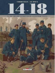 La série 14-18 poursuit son cours de publication rapide avec le troisième volume, Le champ d’honneur. Prévu en 10 tomes, entre 2014 et 2018, cet univers sur la Première Guerre Mondiale est signé Eric Corbeyran et Etienne Le Roux et met en scène une bande de huit amis issus du même village affectés dans le même régiment d’infanterie.