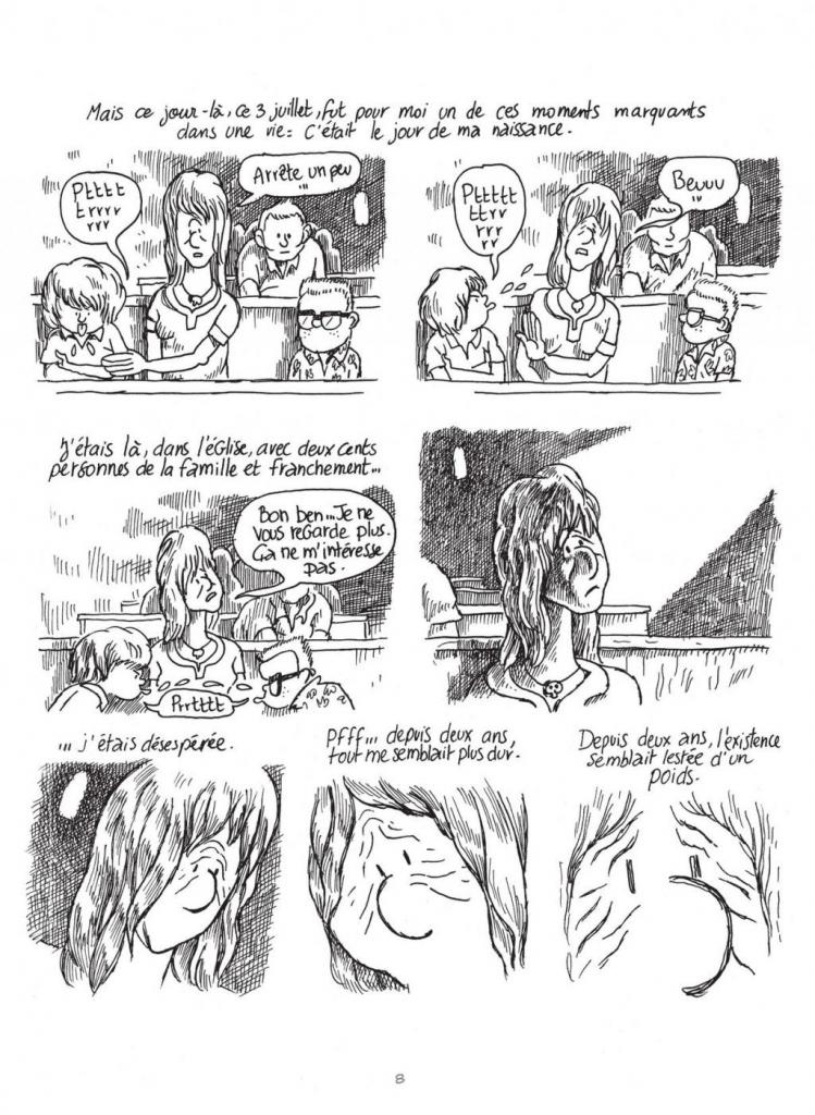 Compilation des notes parues sur son blog (http://incarnfiction.blogspot.fr), ce roman graphique original et surprenant est une ode à l’imaginaire et à l’imagination. Cette envie de rupture dans sa condition de mère célibataire est mise en lumière d’une belle façon. Tous les ingrédients de son existence sont là : sa vie professionnelle d’auteure de bande dessinée, le Festival d’Angoulême, la mort de ses proches, son adolescence, ses premières amours, l’amitié, sa sœur et ses parents.