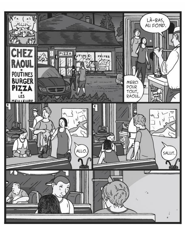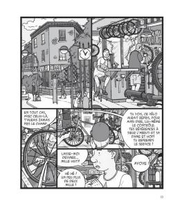 Tout en nuance, le très bon récit de Marsi propose une aventure rocambolesque construite comme un polar, mettant en scène Pluton et son amie Mercure. L’auteur sublime ces deux anti-héros tombés dans un drôle d’engrenage. Personnages simples vivant grâce à un petit boulot peu rémunérateur, ils passent leur vie dans un petit appartement canadien. Ce bonheur là leur suffit. Dans l’intimité mais aussi pour tout le monde, ils s’appellent par leur surnom. Entre Sergio d’Io le réparateur de vélo ou Muriel la secrétaire de l’entreprise de coursiers, tout roule. A travers ces 164 pages, Marsi brosse le portrait d’une génération de canadiens pas très riches mais qui se contente de peu.
