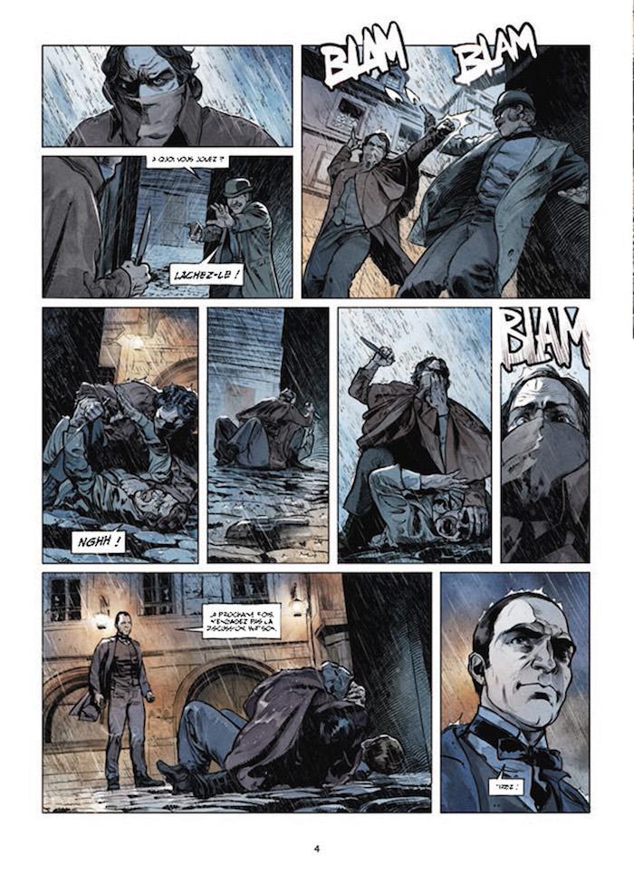 Sombre, l’histoire est portée par le duo de détectives, au zénith de leur forme, malgré la mort de la femme d’Holmes quelques mois auparavant. Bel humour, bagarres, morts, morts-vivants, tout est réuni pour que l’intrigue fonctionne. En distillant harmonieusement du fantastique à son récit, Sylvain Cordurié reste assez fidèle à l’esprit du romancier anglais. Le huis-clos dans la ville britannique installe aussi une atmosphère lourde et un peu angoissante. Parfois proche de Walking Dead (Kirkman & Adlard, Delcourt), les êtres décharnés sont aussi avides de chair que leurs homologues américains.