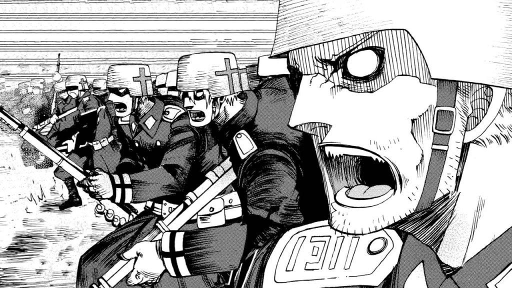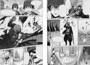 Le récit de Hiyma Daisuke plonge le lecteur dès les premières pages dans une guerre imaginée par l’auteur. Inventant deux pays en conflit, une carte et des batailles, elle fusionne plusieurs guerres et plusieurs états pour livre son manga. Si les batailles sont sanglantes, ressemblent à celle de la Première Guerre Mondiale en France dans les tranchées, l’histoire prend un tour original en accueillant Haru la sorcière. Son don de vision d’êtres humains à des centaines de mètres voire de kilomètres, font d’elle une recrue de choix.