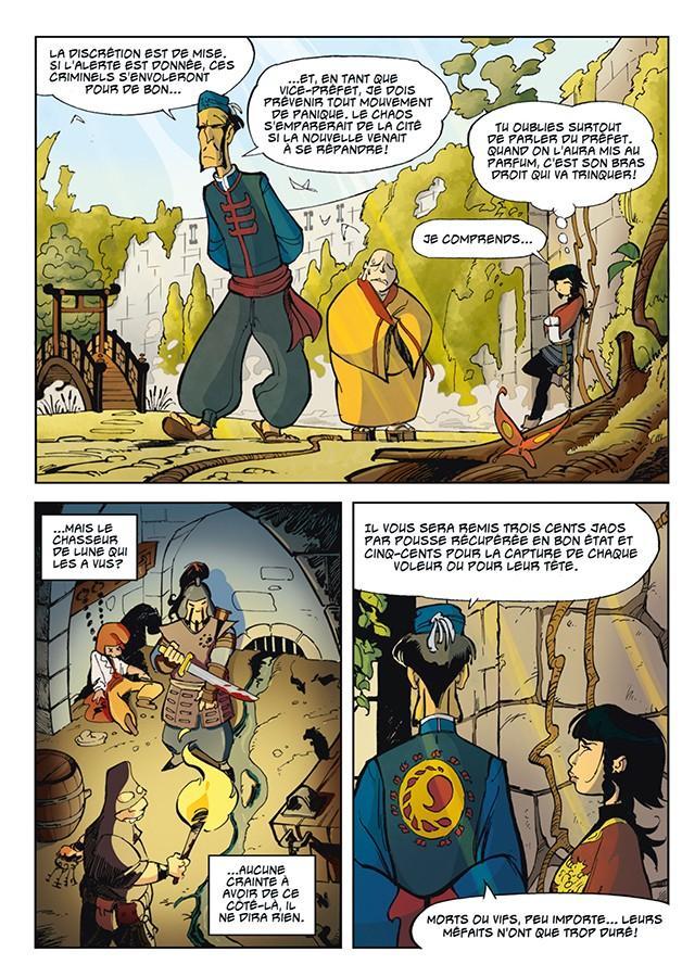 De plus, il distille du fantastique (bienvenue) dans ce pays asiatique médiéval. Le lecteur par l’entremise de son héros se retrouve dans des lieux intéressants de la ville : bas quartiers malfamés, marché aux milles couleurs et saveurs, boutiques, échoppes et de nombreuses habitations, mais aussi les décors maritimes ou campagnards.