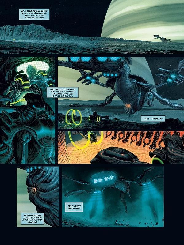 Pour construire son scénario, Christophe Bec s’est inspiré de ses lectures de jeunesse et il ne s’en cache pas lorsqu’il présente Eternum. Les récits de science-fiction ou les thrillers des années 80, tel Alien, Outland ou 2010, ont donc nourri cette nouvelle très bonne saga d’anticipation de l’auteur de Sanctuaire. Dès le début de l’album, le lecteur est accroché par l’histoire à la fois angoissante mais très mystérieuse. Le suspens, distillé au fil des pages, est fort et le climat est vite oppressant. Intense et bien maîtrisée, la partie narrative est fondée sur le grand talent de conteur de Christophe Bec.