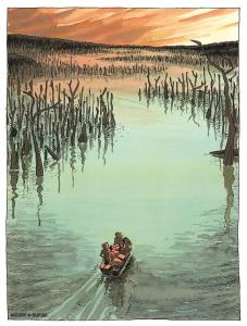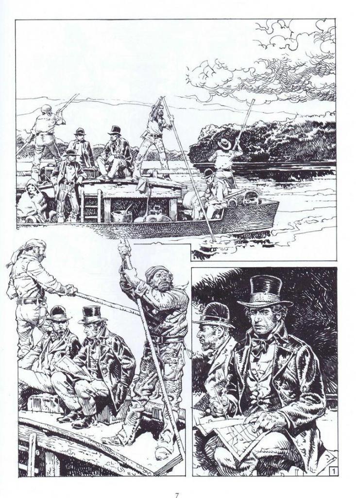 – En remontant le fleuve : Le long du Mississipi les barges charrient peaux, whisky et explorateurs. Le monde change et le vieux trappeur Danley, ami des Pieds-Noirs sent que la vie qu’il a connue va disparaître. Celui qui a vécu avec l’ancienne squaw du chef Loup Jaune décide de prendre d’emprunter un méandre tragique.