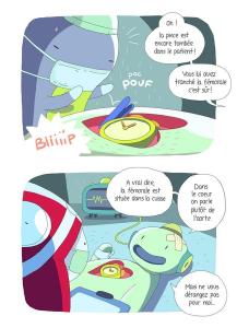 Le trait de Cédric Kernel est d’une grande singularité (quelques lecteurs pourront être rebuté par un dessin non-abouti). Là encore, le dessinateur de Prunelle fille du cyclope (avec Vicky Portail-Kernel, Ankama) s’inspire de la culture japonaise pour la forme des visages de ses personnages mais aussi leurs mouvements. Une bonne surprise !