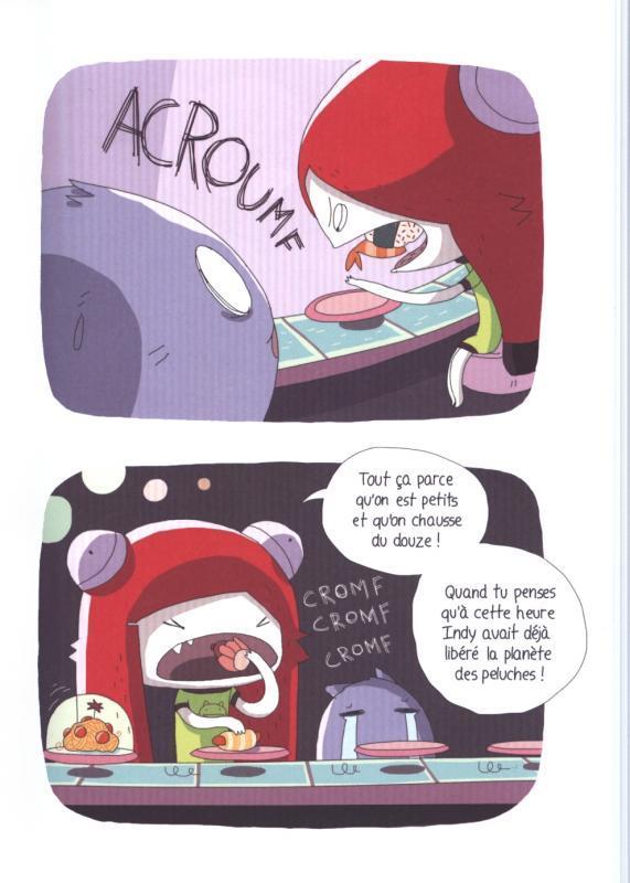 Les mini-histoires de Mélissa Wolfe et Grenadine sont ciblés pour les plus jeunes lecteurs. Courant sur un maximum de cinq pages, elles comportent que peu de textes laissant une grande place aux illustrations. Si la grande force de l’album réside dans la partie graphique, la partie scénaristique est légèrement plus faible. Il faut souligner que les belles planches sont d’une belle originalité comportant pour chacune d’elle uniquement deux très grandes illustrations. Le trait tout en rondeur est simple et épuré, souligné par de belles couleurs.