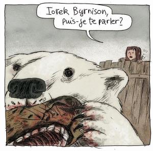 Adaptation très réussie d’A la croisée des mondes, le roman de Philip Pullman, Les royaumes du Nord de Stéphane Melchior et Clément Oubrerie avait créé la belle surprise lors du dernier Festival d’Angoulême en devenant le lauréat du Fauve Jeunesse 2015. Dans le deuxième tome de la série, le lecteur continue de suivre les aventures de Lyra, partie à la recherche de son ami Roger et de Lord Asriel, son père. Pour l’aider dans sa tache immense, elle fait appel au féroce Iorek Byrnison.