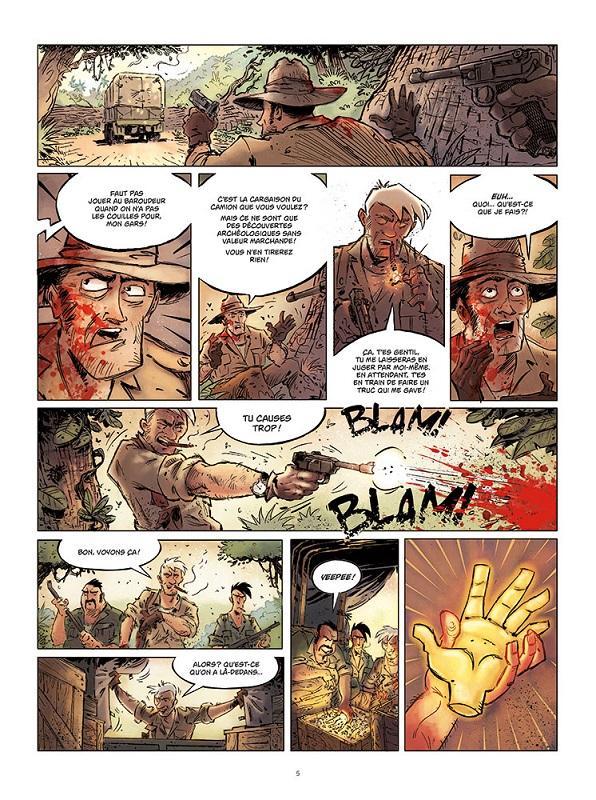 Des zombies, encore des zombies ! Depuis le succès retentissant du comics Walking Dead (Kirkman et Adlard, chez Delcourt) et de la série télévisée qui en découle, les ouvrages sur ces êtres décharnés ses sont multipliés (Alice Matheson, Zombie Walk, La nuit des morts-vivants…), avec plus ou moins de réussite. Dans ce flot important, les éditions Paquet publient Gold of the dead, un one-shot plutôt réussi. Pour son récit, Fred Weytens essaie d’être original en introduisant un côté ésotérique : une malédiction inca ancienne. Les personnes qui seraient en contact avec ce trésor pré-colombien subirait un changement physique et se transformerait en zombie.