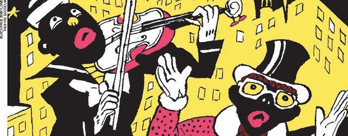 blackface (4)Aux Etats-Unis, le Blackface est une forme théâtrale particulière, pratiquée dans les minstrel show puis dans les vaudevilles, dans lequel le comédien incarne une caricature stéréotypée de personne noire. Popularisé au XIXe siècle, il devient un mouvement à part entière au début du XXe siècle, jusqu’à disparaître dans les années 60. Thomas Gosselin s’empare de ce phénomène ségrégationniste et raciste dans l’excellent Blackface Babylone, un album paru chez Atrabile.