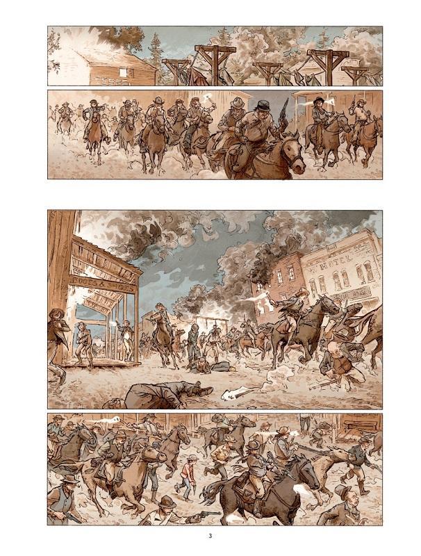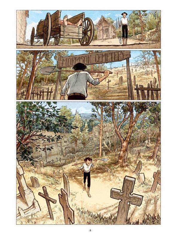 9910000043352_pgC’est le début de l’enquête, qui va de rebondissement en rebondissement. Stern croise la route d’un ancien ami de Charles, qui l’a sauvé lors d’une bataille de la Guerre de Sécession. Ce clochard alcoolique va s’avérer important pour dénouer le fil de l’énigme. La grande force du récit de Frédéric Maffre repose sur un belle galerie de portraits, figures pittoresques des westerns de notre enfance. Comme son anti-héros, au physique et à la personnalité très loin des clichés de croque-morts (dans Lucky Luke notamment).