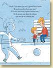 super fiston (3)Super Fiston est le septième album de Sébastien Chebret. Après un travail avec le scénariste de bandes dessinées Zidrou (Chien Fou chez Alice Jeunesse, 2014), il met son talent au service de Christos. Pour donner de la force au dialogue entre le père et le fils, il utilise un parti-pris graphique très intelligent : les deux héros sont les seuls colorés dans ses planches tandis que le reste de la page (décors, passants…) sont en bichromie (blanche et bleue). Son trait ligne-claire est idéal pour les plus jeunes lecteurs.