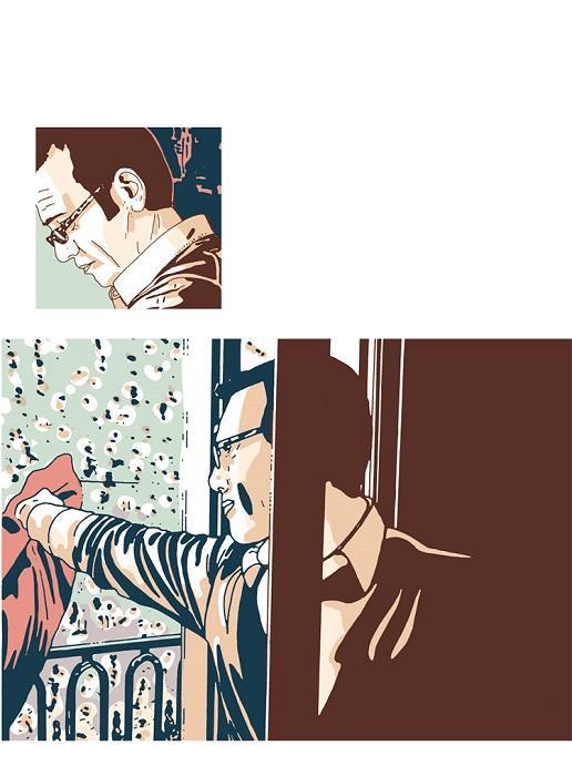 Eugénie Lavenant propose des illustrations froides, sans chaleur, pour restituer au mieux le thème sombre du récit de Jean Vautrin. Les grands aplats de couleurs (vert, orange, marron…) par ordinateur apporte aussi la distance face à l’histoire dérangeante, singulière et aux personnages fous.