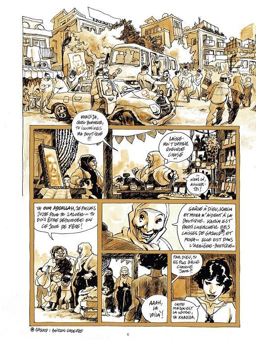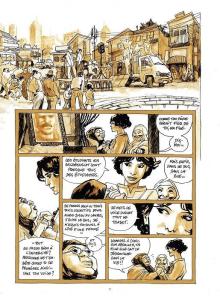 Le duo d’auteurs avait déjà travaillé ensemble lors de la création de l’album Le printemps des arabes (Futuropolis, 2013). Ils continuent leur collaboration sur une thématique proche avec ce nouveau récit. Cette belle variation de Roméo et Juliette en Syrie, permet à Jean-Pierre Filiu de nous parler de ce magnifique pays, étouffé par un régime fort depuis 40 ans. Malgré les révoltes dans le Nord de l’Afrique, la Syrie ne pourra pas opérer de changement à cause de la répression sanglante de la part d’El Assad. Entre traditions et modernité, les deux tourtereaux ne peuvent convoler et s’aimer facilement. Cette belle histoire d’amour avec une tension de tous les instants en toile de fond est magnifiquement mise en image par Cyrille Pomès. Son trait vif permet de livrer des planches rythmées et remplies de mouvements. Ses très belles couleurs ocres, grises et noires apportent la chaleur et les tourments du récit.