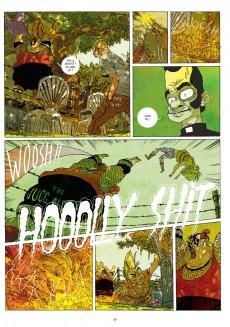 Qualifié par l’éditeur de rural-fantasy, Traquemage est construit comme une belle petite fable fantaisiste et fantastique, gentillette et qui ne paye pas de mine. Wilfried Lupano compose une histoire d’aspect classique mais plutôt efficace, portée par le personnage Pistolin, un garçon serviable, un peu fier de lui, courageux mais ô combien attachant. Alors que son troupeau sera décimé par les soldats d’Othan Le Sale, il décide de défier les mages en continuelle querelle ; ce qui dérange la tranquillité de la vallée.