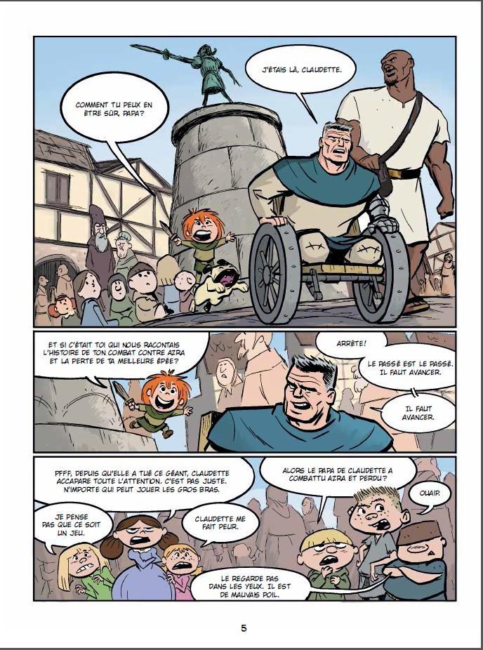 Comme pour le précédent album, Jorge Aguirre propose une aventure folle, très rythmée et teintée de fantastique. Puisque Claudette lui avait permis d’amorcer une série habile et accrocheuse, il la met de nouveau en scène avec Gaston son petit-frère et Marie son amie. Si le jeune garçon se rêve en forgeron comme son père, les résultats se font attendre ; il semble plus doué pour la cuisine. Quant à Marie, jeune châtelaine, elle repousse tous les prétendants qui attendent sagement devant son donjon, au grand dam de sa mère.