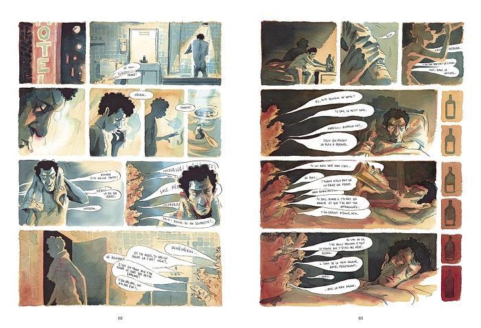 Au cœur de ce beau polar se déroule aussi une romance impossible en ces deux êtres que tout sépare. Comment et pourquoi Clovis se rapproche-t-il de plus en plus de Césaria ? Si le récit de ce bel album nous a moins enchanté que Rouge Karma, il reste la partie graphique de Pierre-Henry Gomont, toujours aussi forte et lumineuse. Avec ses aquarelles, il compose des planches somptueuses qui restituent à merveilles les ambiances de l’histoire.