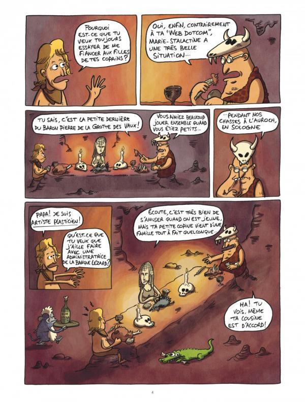 Saga humoristique à succès (450 000 exemplaires vendus depuis le premier tome en 2009), Silex and the city est de retour pour un sixième volume explosif. Jul a de nouveau mitonné un excellent scénario. Merci pour ce mammouth ! (clin d’œil au célèbre livre de l’ex-première dame) met en scène un moment qui aurait du être joyeux : le mariage de Web et de Rahan. Amoureux depuis plusieurs années, les deux tourtereaux veulent convoler en juste noce. C’était sans compter sur la résistance de Crao de la Pétaudière, le père du futur époux. Héritier du volcan EDF (Energie de Feu) qui permet à toute la vallée d’avoir du feu, cet homme riche préfère voir son rejeton se marier avec une fille de bonne famille. Il refuse donc cette mésalliance. En plus d’une grotte de luxe, il peut se targuer d’une ascendance célèbre jusqu’à Troglodyte le Téméraire. De son côté, la future mariée est la fille de deux professeurs de ZEP (Zone d’évolution prioritaire) ; d’une famille moyenne simple. Au fond de la vallée, cette passionnée de mode est la sœur d’Url, un alter-darwiniste radical.
