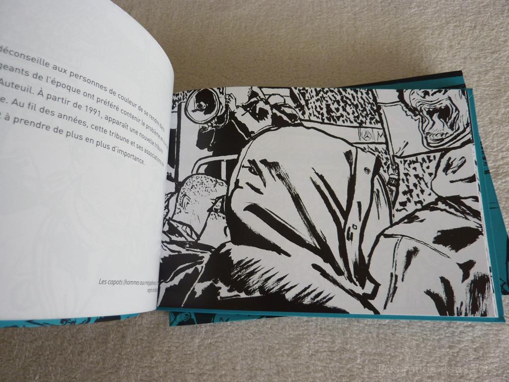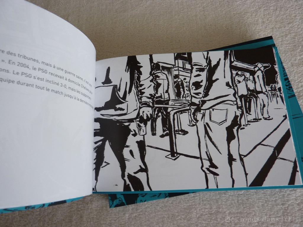 Supporters est un très beau roman graphique de Guillaume Warth, composé de textes (à gauche) et d’illustrations en noir et blanc (à droite) de l’album. Il raconte ses deux années d’ultra au PSG. D’ailleurs dès les premières pages, il teint à expliquer la grande différence entre un ultra et un hooligan. En effet, pour la plupart des personnes, un Ultra est assimilé au hooliganisme (personne violente qui ne cherche qu’à se battre pour d’obscures causes). Ses amis et lui sont de vrais supporters, qui mettent de l’ambiance dans le stade du Parc des Princes, qui chantent quoiqu’il arrive, dans les victoires comme dans les défaites, mais aussi prêts à faire des milliers de kilomètres pour rejoindre les joueurs à l’extérieur.